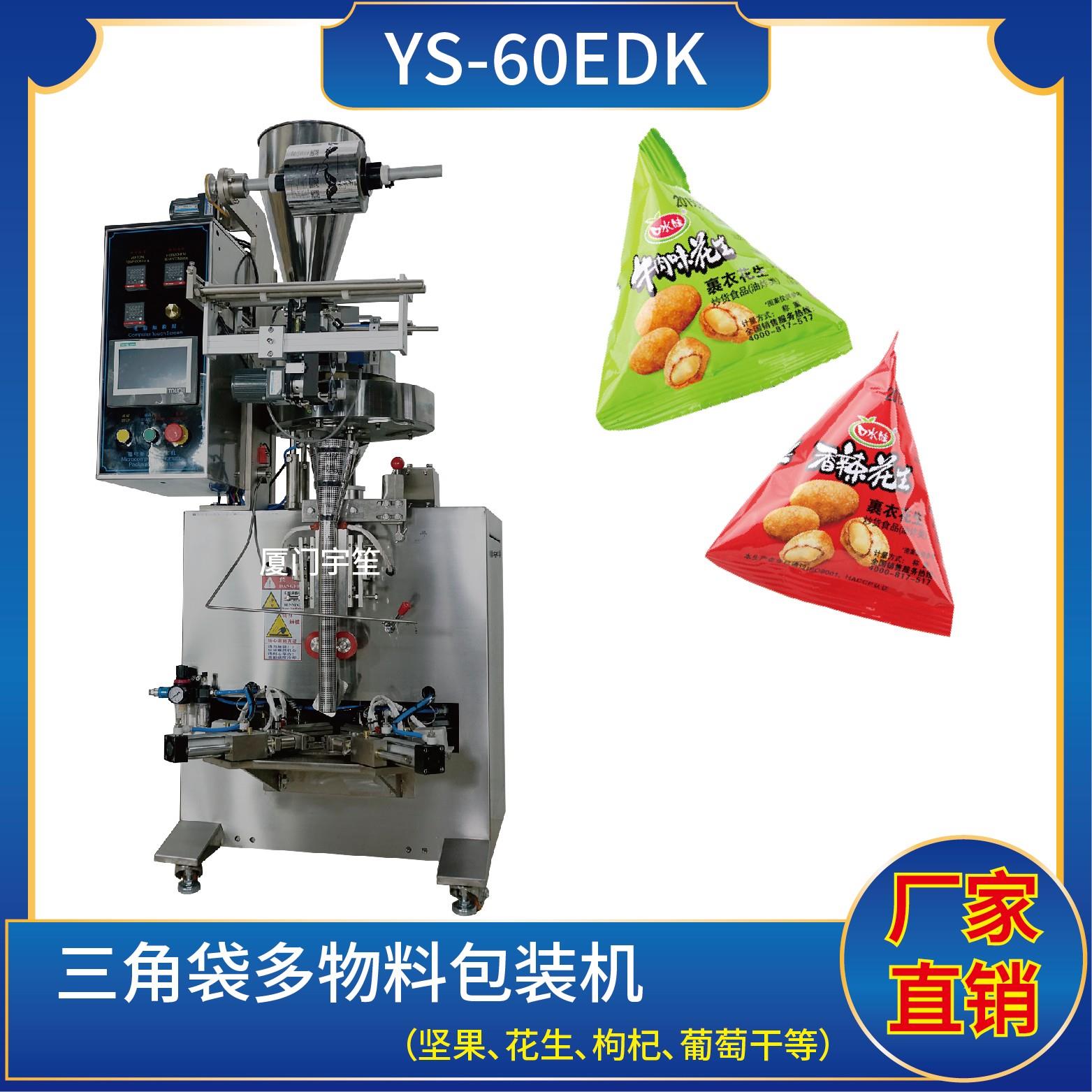 YP-61EDK 三角袋多物料包裝機特點1、適用于食品、醫(yī)藥、化工、化妝品行業(yè)中顆粒物品的計量包裝。2、可自動完成制袋、計量、下料、封合、分切、計數(shù)、且可根據(jù)客戶要求配置打印批號等功能。3、觸摸屏操作,PLC 控制,驅動步進電機控制袋長,性能穩(wěn)定、調整方便、檢測準確。智能式溫控儀,PID調節(jié),保證將溫度的誤差范圍控…