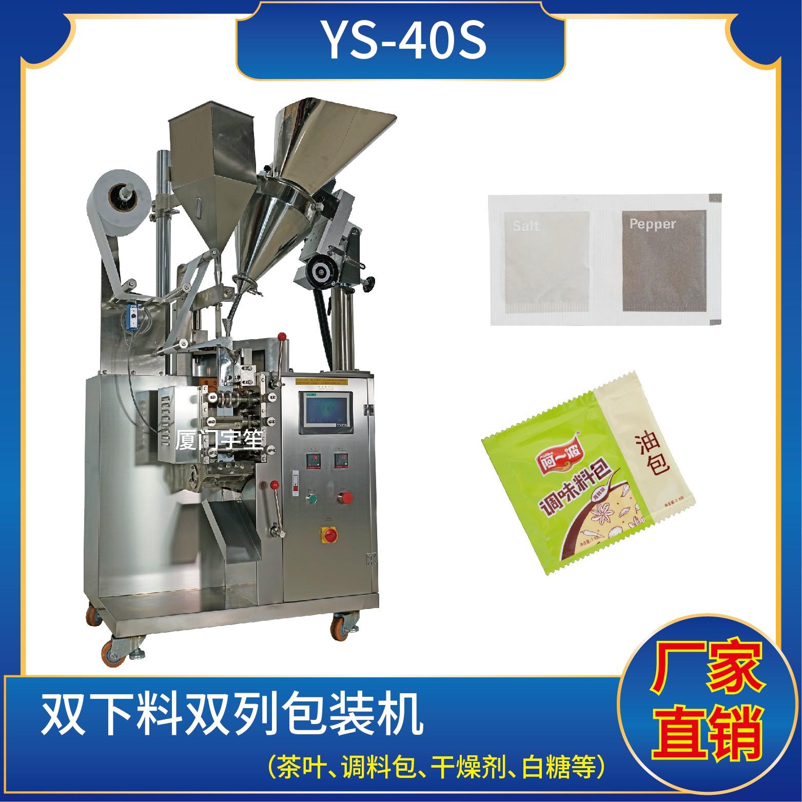 YS-40AK 三邊封顆粒自動包裝機特 點 1、適用于方便面行業(yè)湯包,干燥劑,沖劑,碎茶等小顆粒狀物品包裝。2、可自動完成制袋、計量、充填、封合、分切及計數(shù)等功能。3、包裝材料:茶葉濾紙、復合膜、無紡布。封口方式:三邊封技術參數(shù) 計量范圍:10 - 40 g(0.6 ~ 33 ml)制袋尺寸:長 ( L ) : 40 - 110 mm …