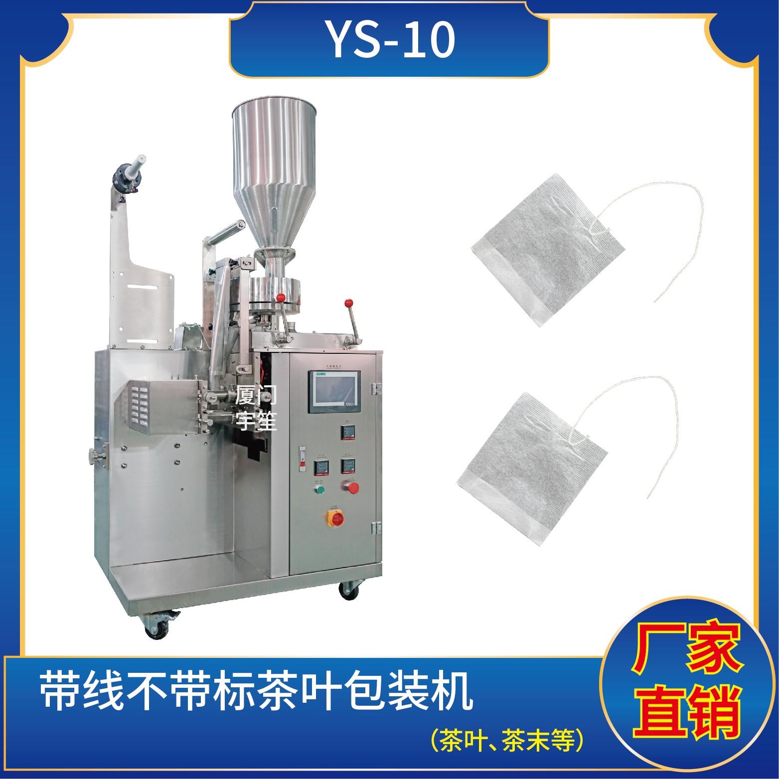 YS-10 新一代 袋泡茶包裝機特 點 1、適用于碎茶、藥茶、咖啡、植物等類似產(chǎn)品的自動包裝。2、包裝袋帶提線,可自動完成制袋、計量、充填、封合、分切及計數(shù)等功能。3、包裝材料:茶葉濾紙、棉線。封口方式 :三邊封技術參數(shù)計量范圍:1 - 10 g(0.6 ~ 26 ml)制袋尺寸:長 ( L ) : 50 - 80 mm 寬 ( W…